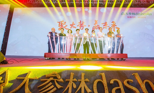yl6809永利药业集团董事长刘景萍女士与大参林医药集团董事长柯云峰先生、中国医药商业协会执行会长付明仲女士等嘉宾共同开启了“聚大势•赢未来"大参林工商合作峰会的大幕。